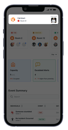 Timely fall and bed-exit alerts help caregivers act quickly and stay calm