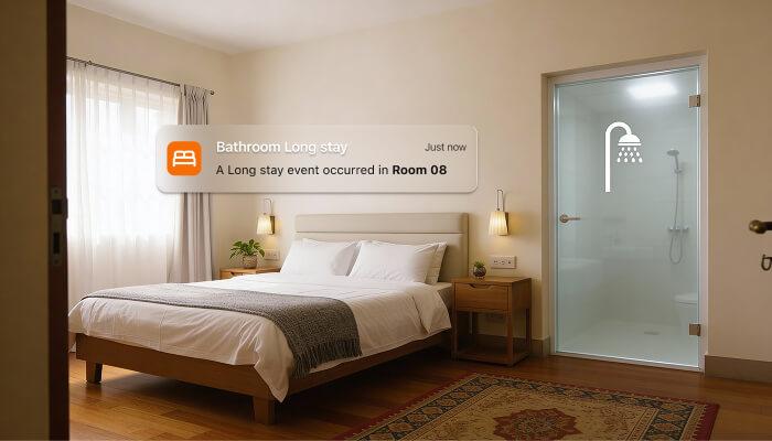 Detects unusually long bathroom stays to reduce unnoticed incidents
